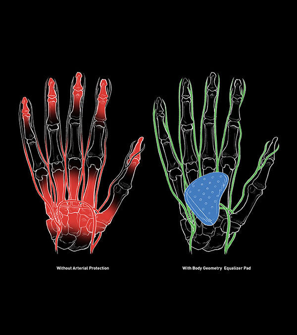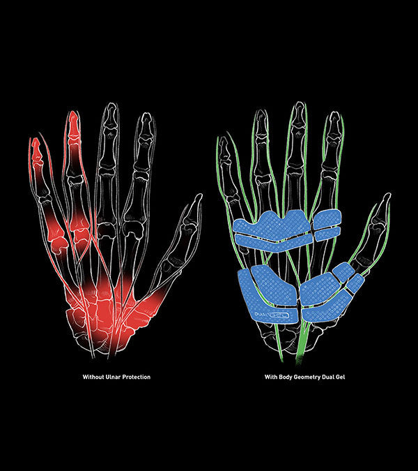 Hands getting fatigued and going numb on long rides? Body Geometry Gel gloves disperse pressure by padding the ulnar nerve. So now, you can ride longer and with a stronger grip.