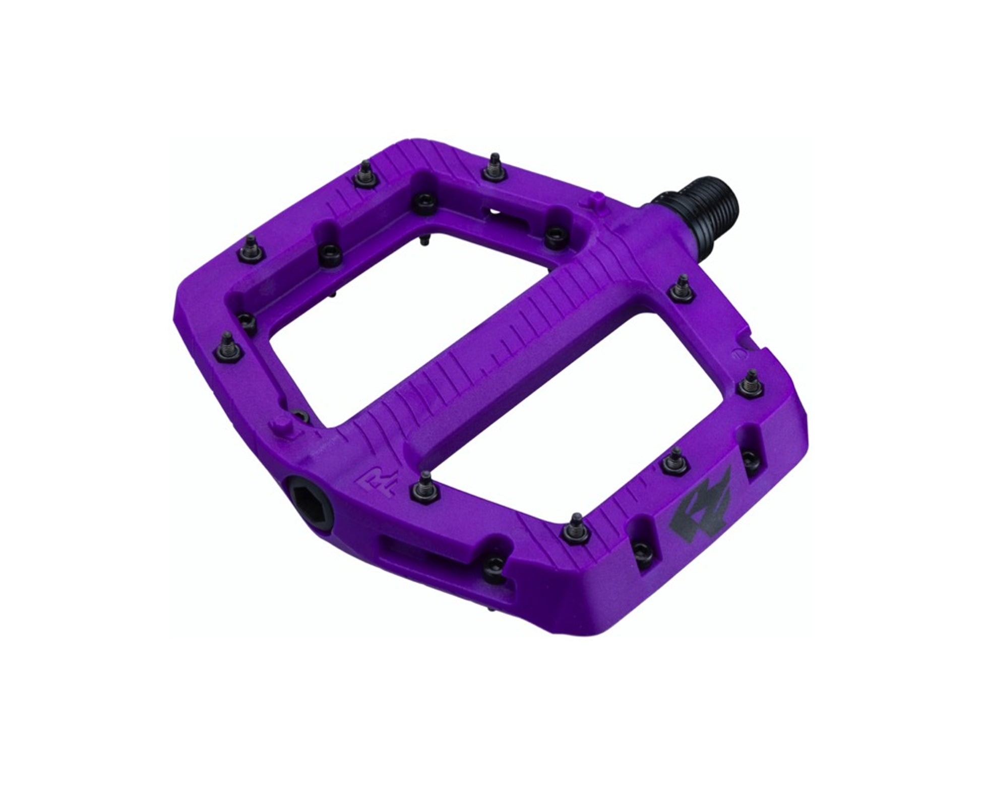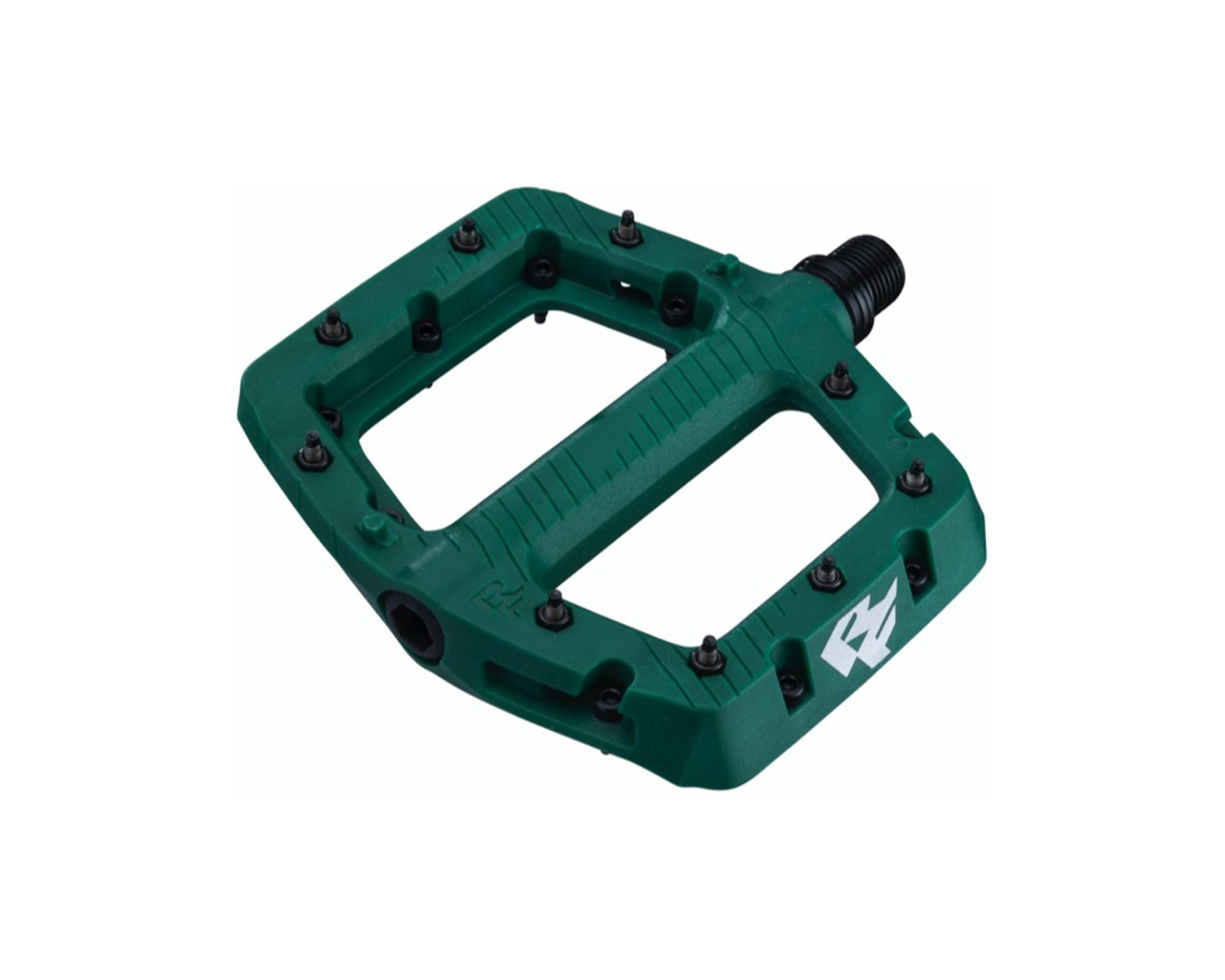 - Eleven pins per side (nine metal, two co-molded composite pins) are placed around the pedal’s edge for consistent grip and to maintain a secure, concave feel